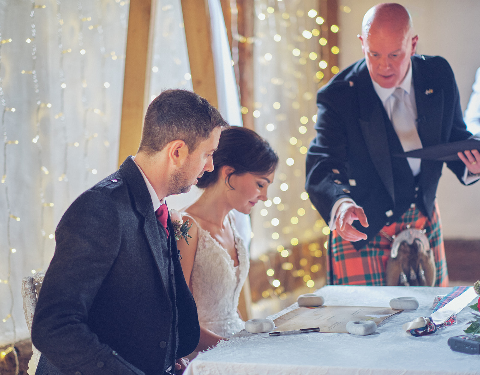 A brief ceremony involving you and two witnesses. Each in turn sign a keepsake parchment or certificate which is then presented to the newlyweds.
